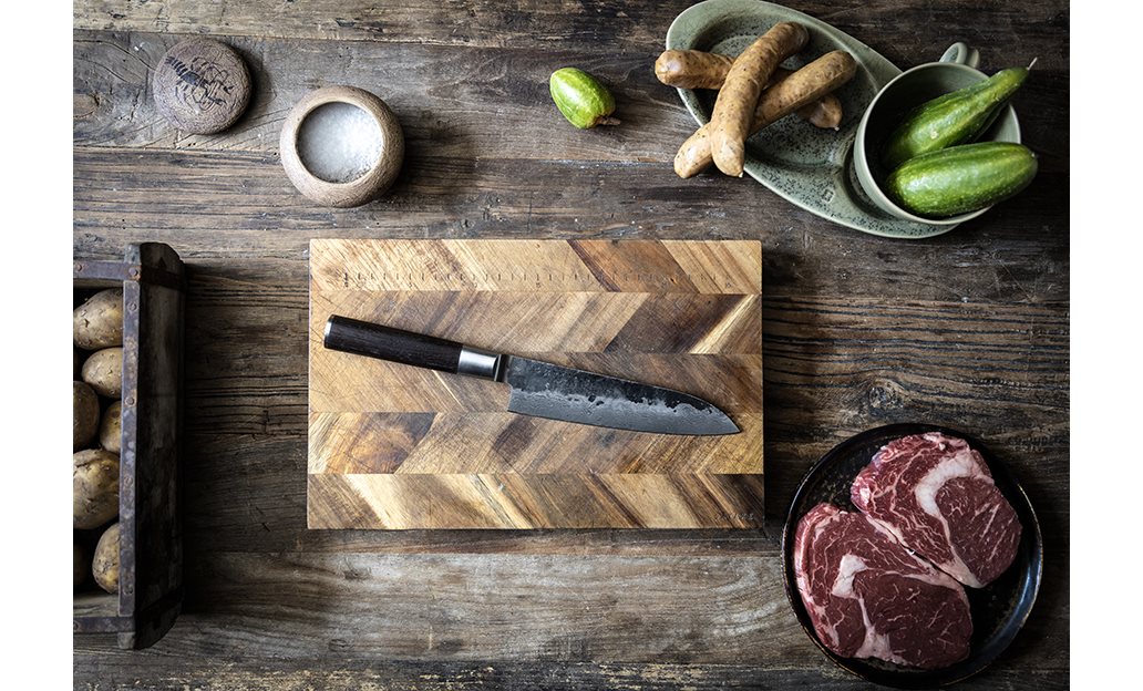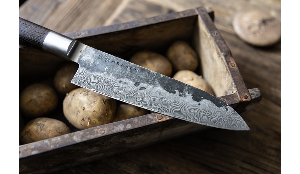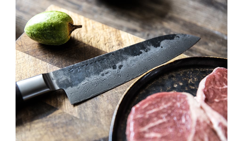 Kuro är en grovt hamrad kniv med ett blad av VG-10-stål som är processat åtta gånger vilket ger extra skärpa och en hårdhet på ca 58 HRC. Det långa handtaget av bränt trä med bolster och skaftände av 18/8-stål ger perfekt grepp, balans och stabilitet.