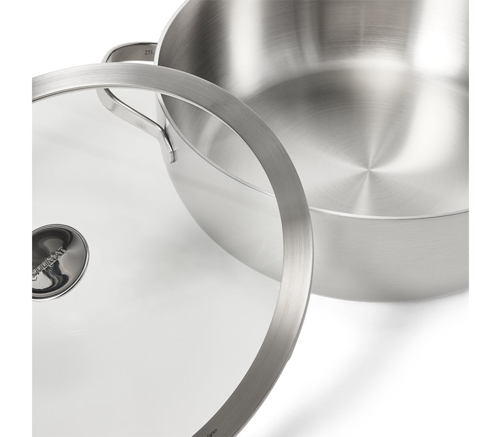 Denna nyhet från 2025 går under namnet Chef's Pan och är en helt underbar produkt att arbeta med i köket. Perfekt för större kok som till exempel köttfärssås eller liknande grytor där du kan bygga din rätt från början till slut i en och samma gryta och dessutom ställa fram den direkt på bordet för en otroligt läcker och fin servering.