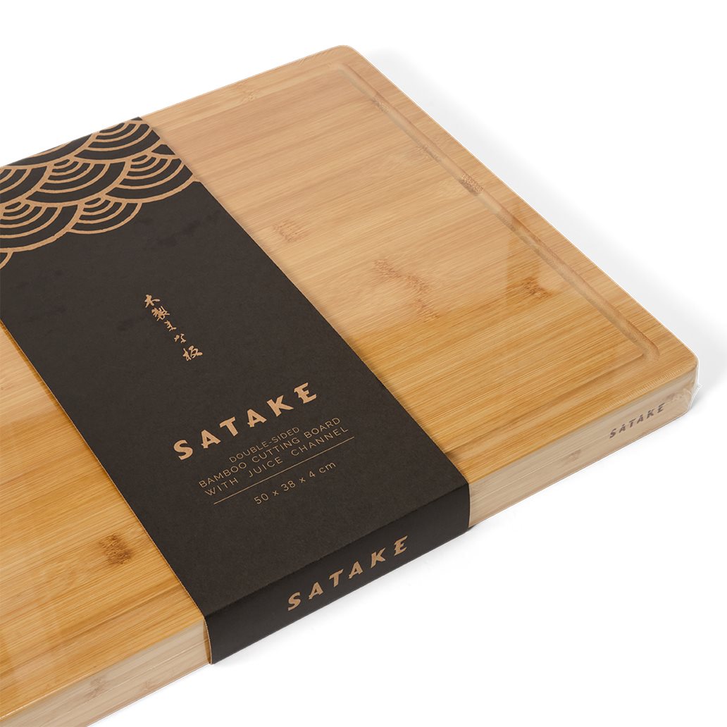 En stilren och vacker skärbräda av bambuträ från Satake. Skärbrädan kan användas på båda sidorna och har måtten 50 x 38 x 4 cm. Ena sidan har så kallad saftränna. Brädan är behandlad med en skyddande oljefinish och redo att användas direkt efter en första lätt avtorkning eller snabb handdisk.