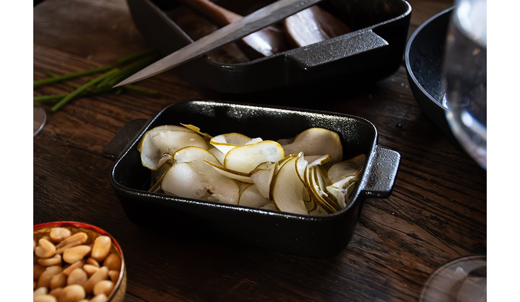 Japansk matlagning är en harmonisk blandning av elegans och enkelhet, bäst uppskattad på små tallrikar. Varje del av en rätt, tillagad och presenterad med stolthet och värdighet på sitt eget fat, inbjuder dig att njuta av dess delikata smaker utan brådska eller stress. Denna matstil uppmuntrar till medvetenhet och uppskattning, vilket gör att du kan använda alla dina sinnen för att uppleva maten.